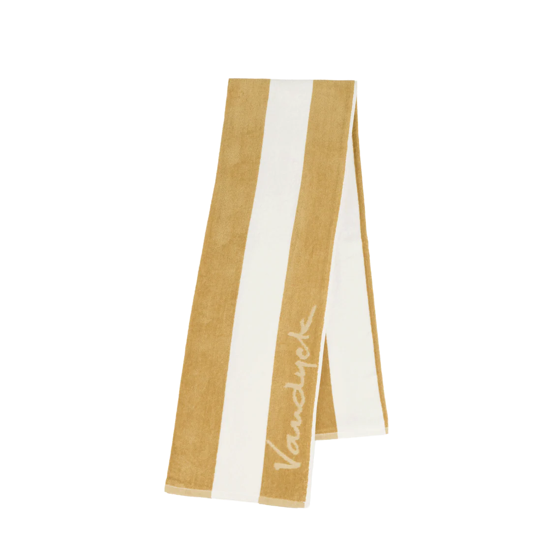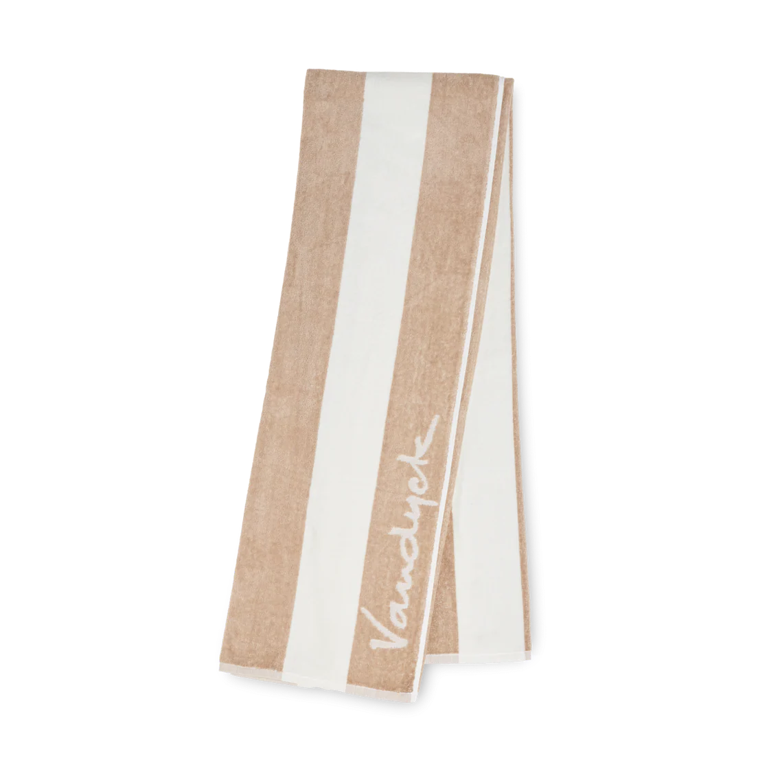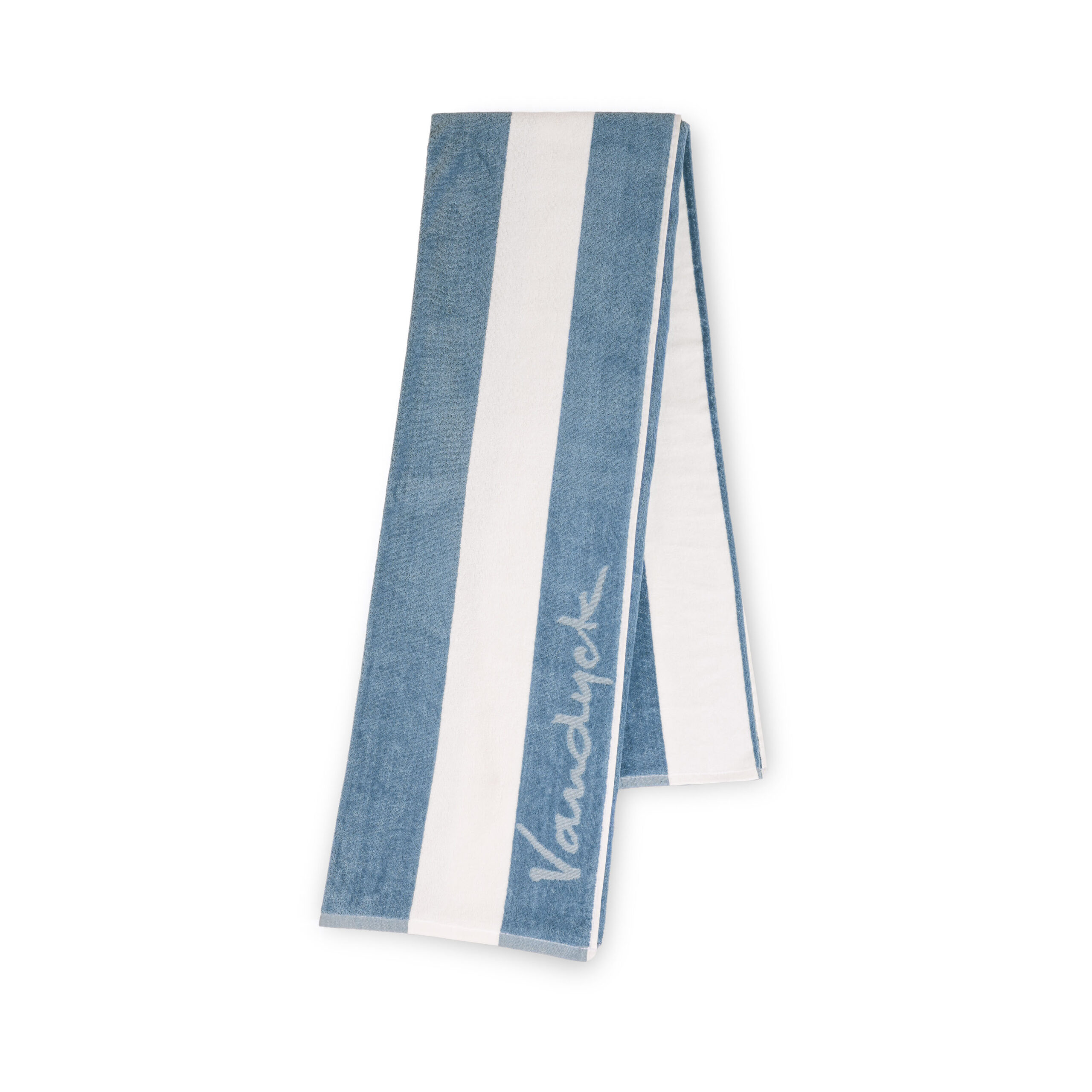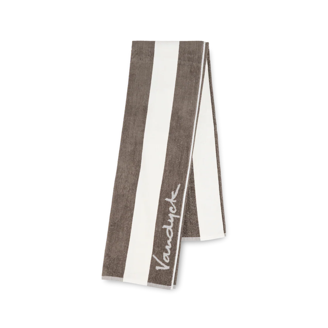 Palma-strandhåndkleet fra Vandyck har en generøs størrelse på 100×200 og har et stripete design med en diskré logo.