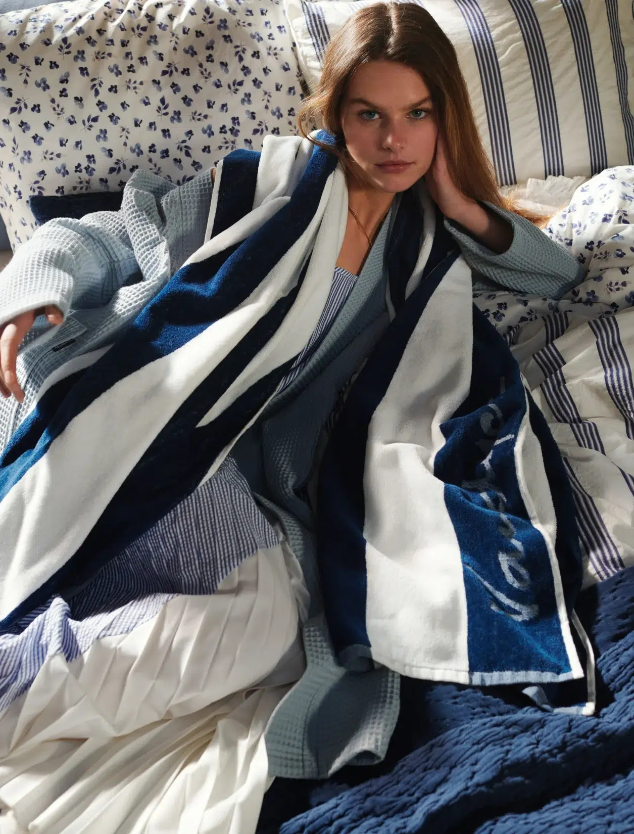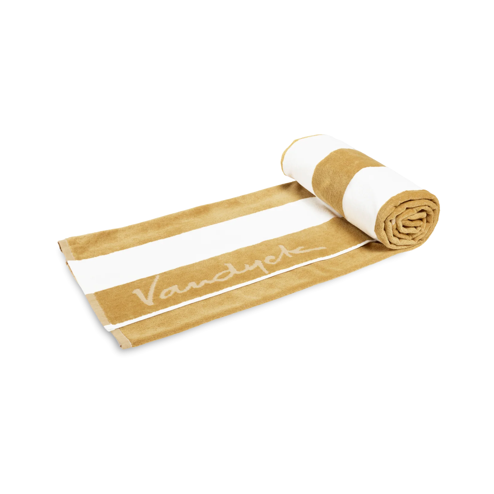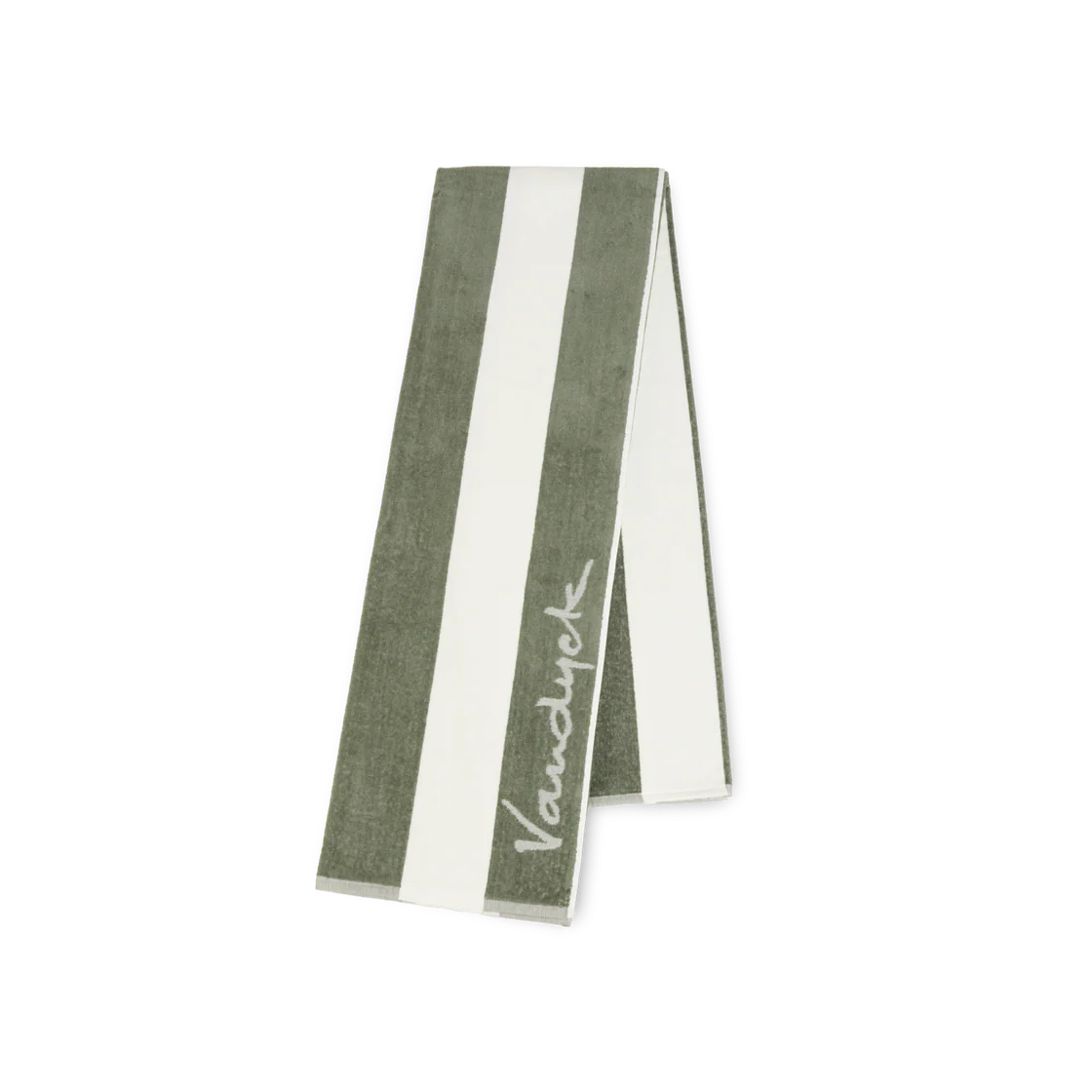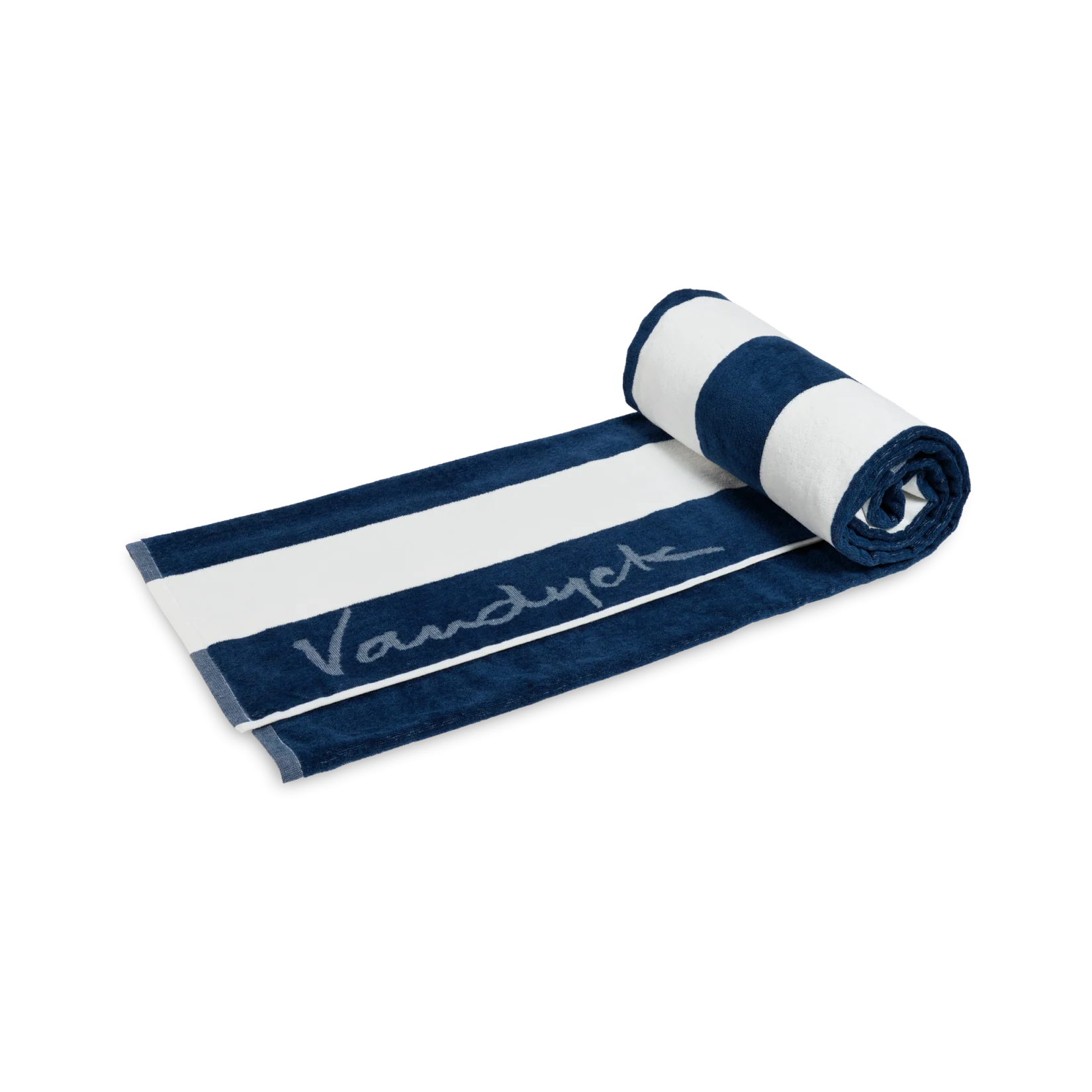 Palma-strandhåndkleet fra Vandyck har en generøs størrelse på 100×200 og har et stripete design med en diskré logo.
