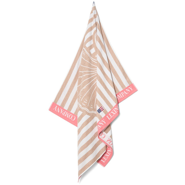 Svøp deg i uanstrengt sommerkomfort med dette strandhåndkleet i bomullsvelur. Det er loddent og fløyelsmykt mot huden, men likevel pålitelig absorberende, og kombinerer tidløse blokkstriper med raffinerte jacquardlogodetaljer for et signaturpreg fra Lexington. Den sjenerøse størrelsen gjør det perfekt for late stunder ved bassengkanten og strandturer – en myk, anvendelig favoritt du vil strekke deg etter hele sesongen.